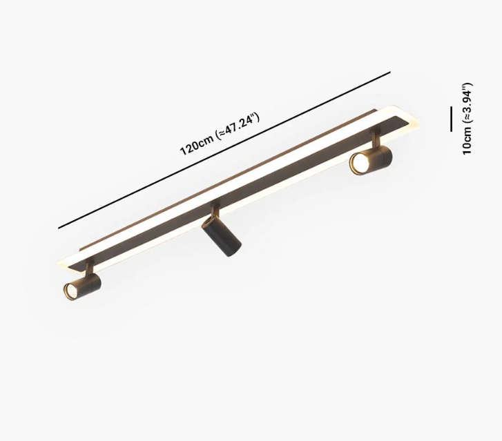 Este accesorio de iluminación muestra un aspecto único, ya que consiste en una luz de techo lineal y varios focos.