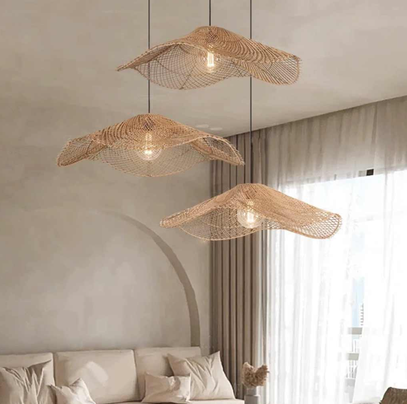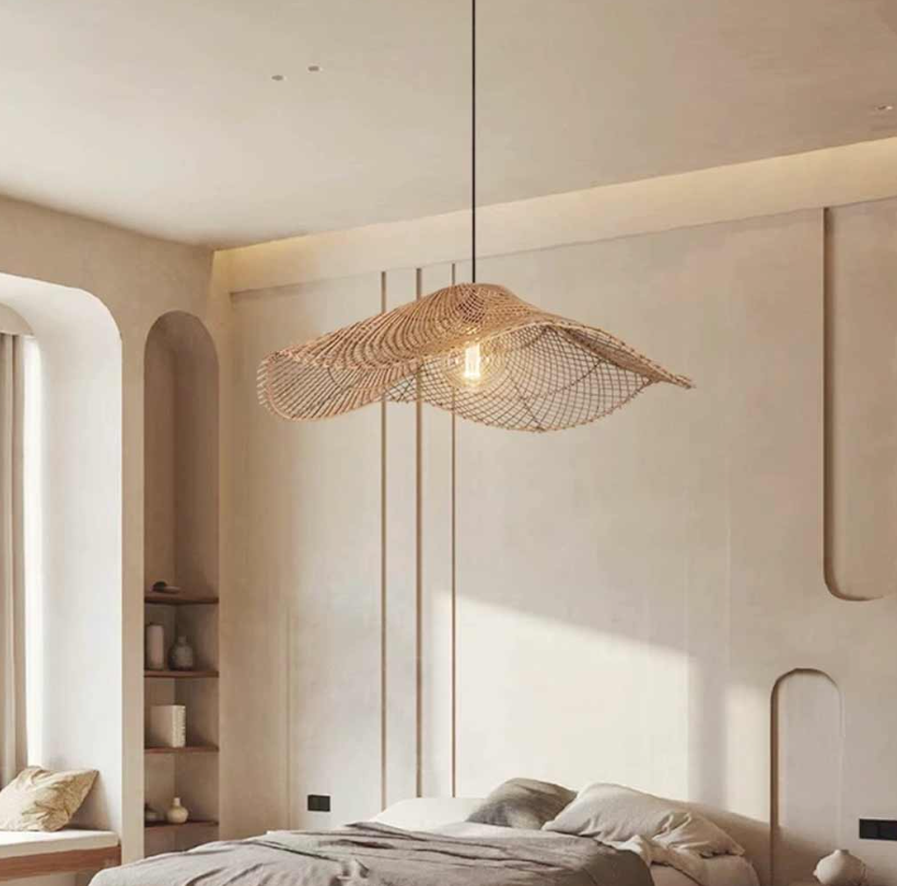 Lámpara colgante con sombrero de paja de ratán tejido Japonés