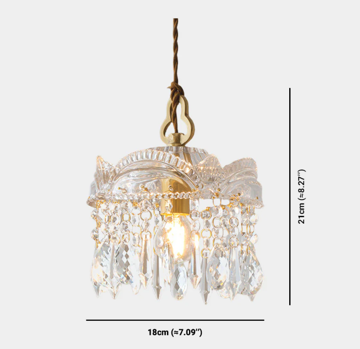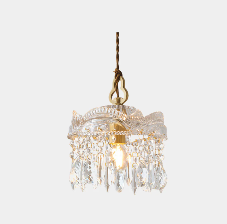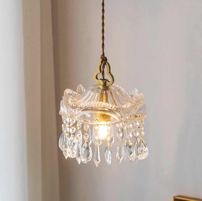 Las características de la lámpara colgante de vidrio transparente de latón francés de lujo incluyen: