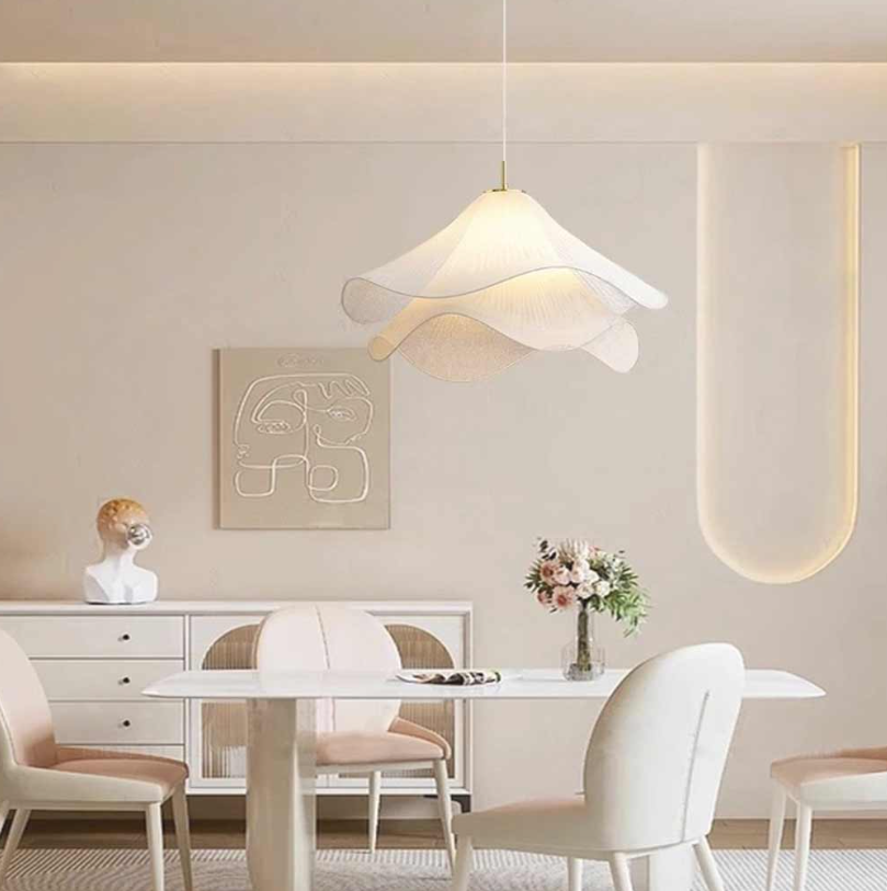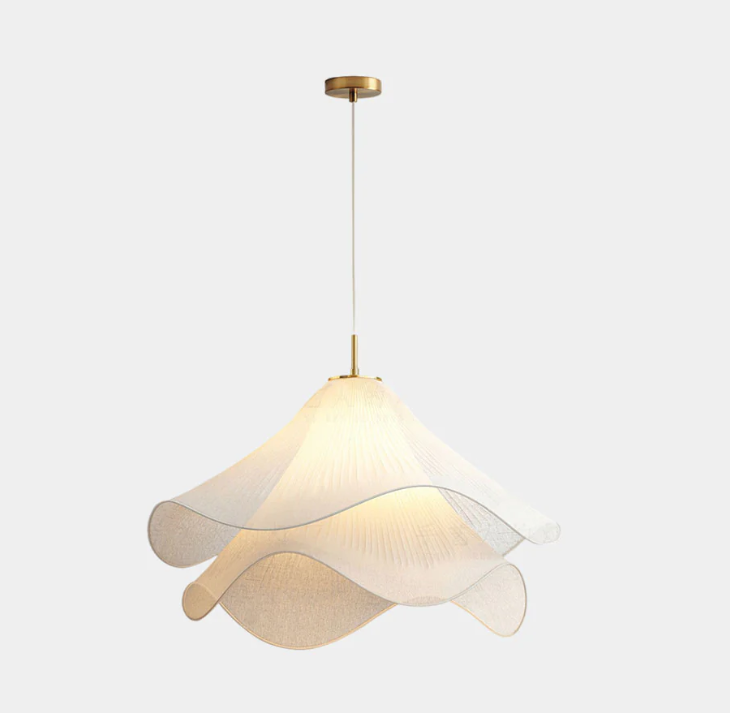 Lámpara colgante francesa de interior con pantalla de tela de pétalos