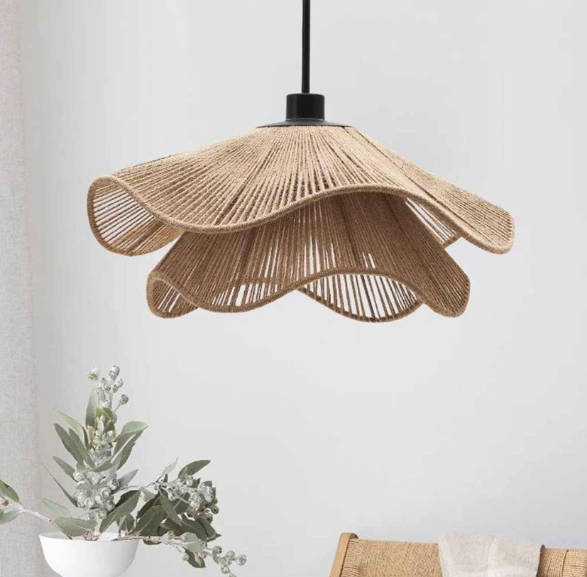 Las características de la lámpara colgante de interior con pantalla de tela de pétalos franceses incluyen: