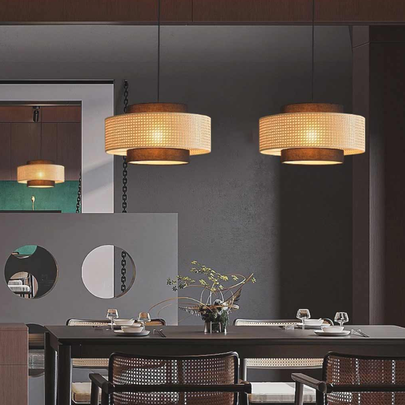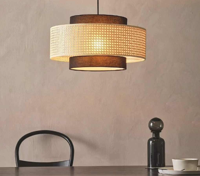 Con ratán y tela hechos a mano, este Ligh colgante tiene tonos dobles. Entonces, la transmisión de luz es más en capas y brillante.