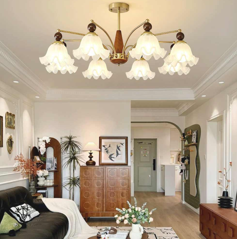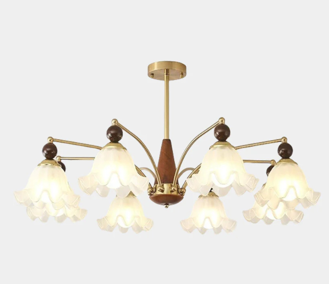 Las bombillas LED están perfectamente ocultas en la sombra de flores de vidrio. Por lo tanto, su encanto elegante y artístico se mejora enormemente.