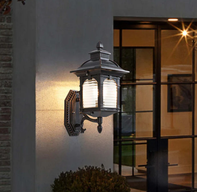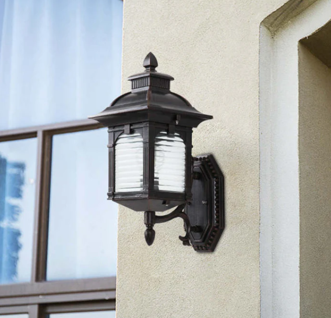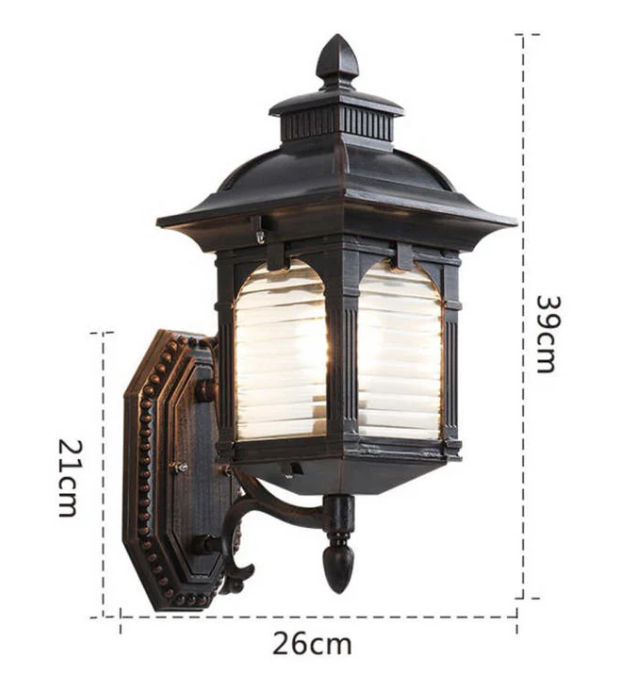 Realza tu patio con la elegancia atemporal de nuestra lámpara de pared exterior de vidrio antiguo. Elaborada con vidrio antiguo y metal intrincado, esta lámpara de pared añade un toque de encanto vintage a tu espacio exterior.